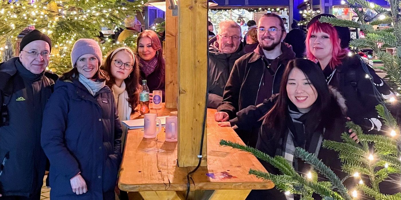 Wir setzen unsere Treffen mit ehemaligen Schülern fort und nach Biergarten und unserem Standort Mitte luden wir dieses Mal passend zur Jahreszeit auf den Weihnachtsmarkt am Humboldtforum ein. Krankheitsbedingt mussten einige leider ihre bereits angekündigte Teilnahme wieder absagen, dafür kamen andere ganz spontan zum Treffen. So wurde es eine gesellige Runde. Danke auch an unseren Lehrer Reiner Kupferschmidt, der auf Wunsch einer Absolventin extra zu diesem Treffen gekommen ist.