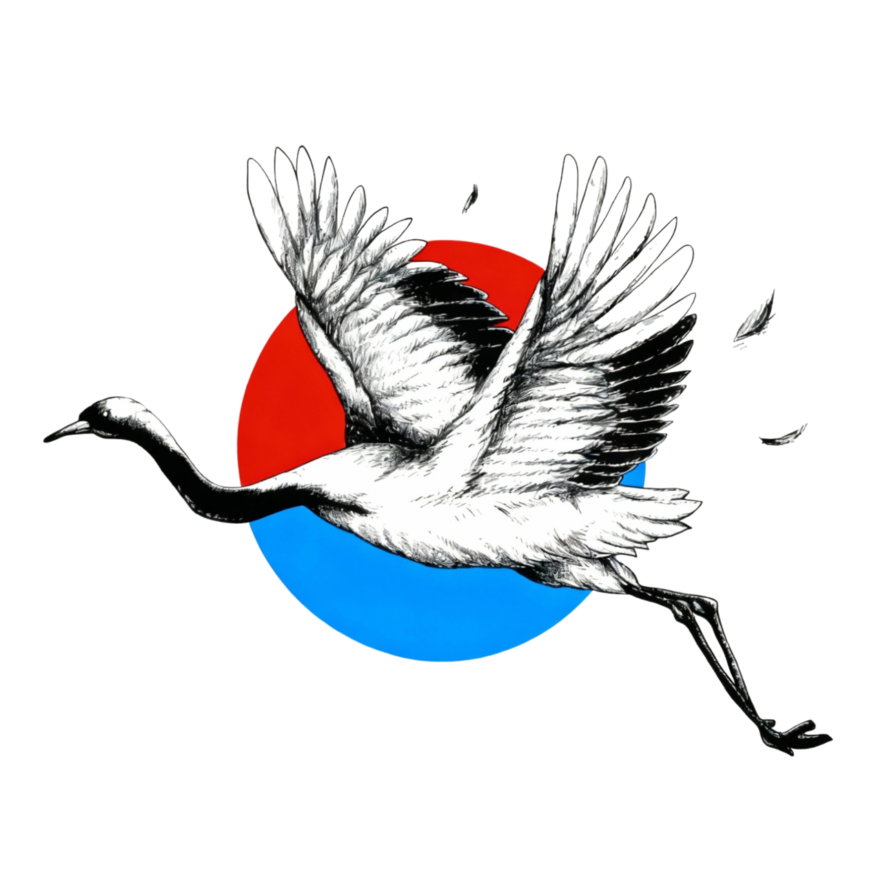 Der Kranich (Bild) hat in Korea eine hohe kulturelle Bedeutung und symbolisiert Langlebigkeit, Weisheit, Reinheit und Frieden. Er kann bis zu 70 Jahre alt werden.