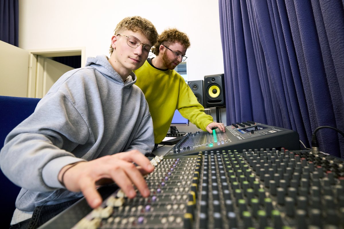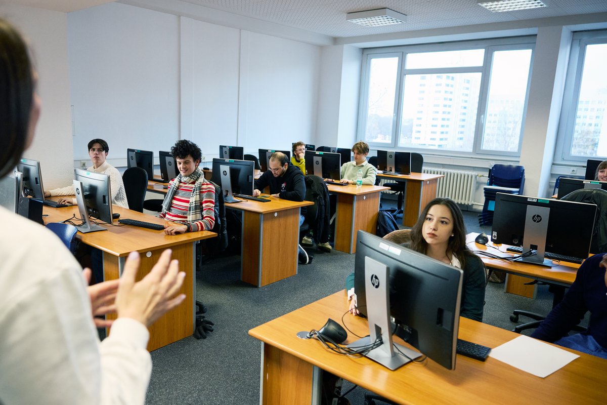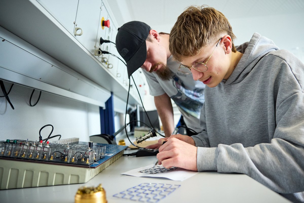 Neben Werkstätten, Laboren, Greenroom und Tonstudio, stehen dir klassische PC- und Theorieräume zur Verfügung, in denen du mit Digital- und Elektrotechnik, Metallverarbeitung oder Medien vertraut wirst und Schritt für Schritt deine beruflichen Fachkompetenzen entwickelst.