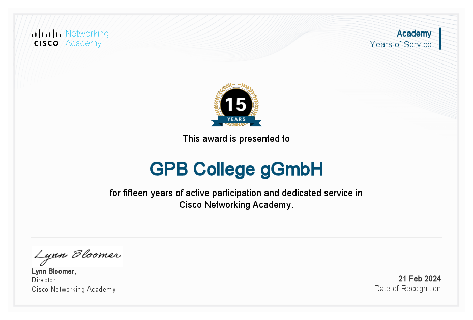 Das GPB College ist Partner der Cisco Networking Academy und bietet dir aus den Bereichen der Betriebssysteme und der Netzwerktechnik verschiedene Zertifikate an.
